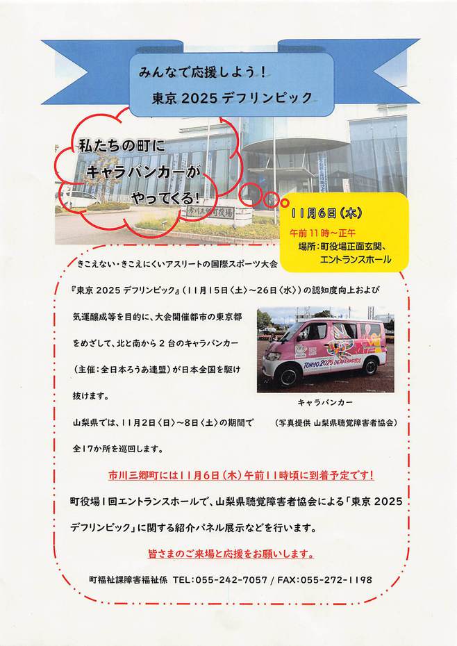 「東京2025デフリンピック全国キャラバンカー」が市川三郷町を訪問します。